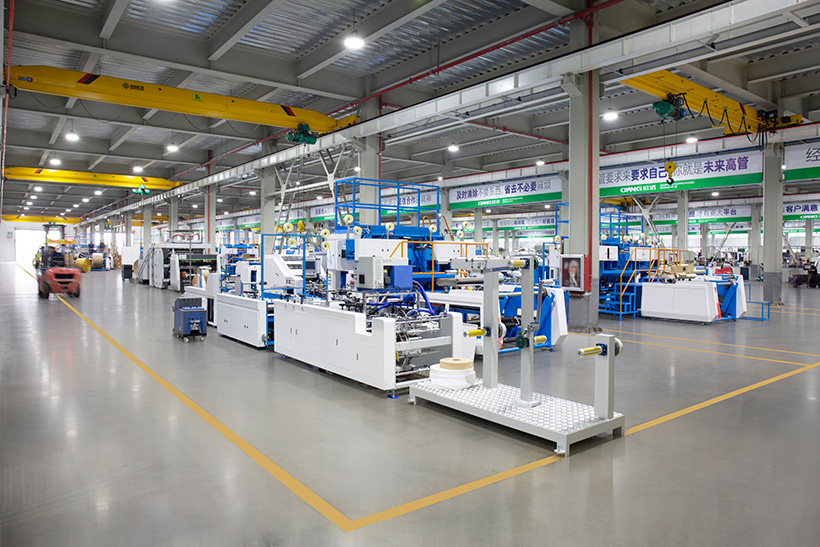 公司借鑒德國技術(shù)開發(fā)出 新世界C款 高速卷筒尖底紙袋機(jī)。該機(jī)由卷筒原色紙或者印刷好的卷筒紙張如牛皮紙,油光紙張,食品淋膜紙,等紙張在機(jī)器上完成預(yù)刺,上邊膠,折邊成形,紙袋拉斷,折底,成品袋輸出一次完成。并根據(jù)客戶的需要,加入的伺服袋身預(yù)壓線功能,該功能讓物品入袋后便于封口,展示外形更加美觀。本機(jī)操作方便,是生產(chǎn)各種不同紙袋,面包袋,干果袋的理想設(shè)備。